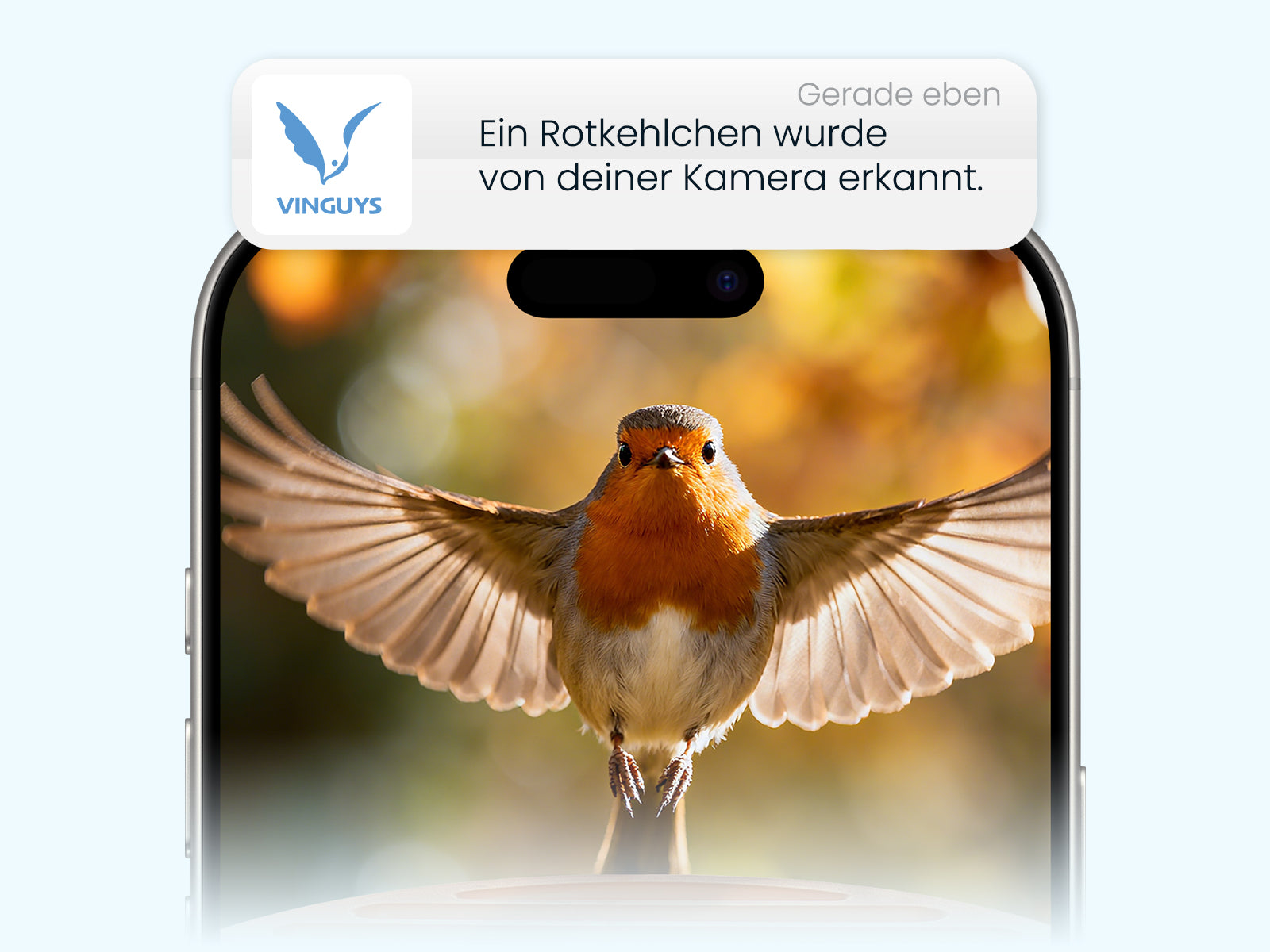 Benachrichtigt Benutzer innerhalb einer Sekunde über Vogelaktivität und beginnt automatisch mit der Aufzeichnung.