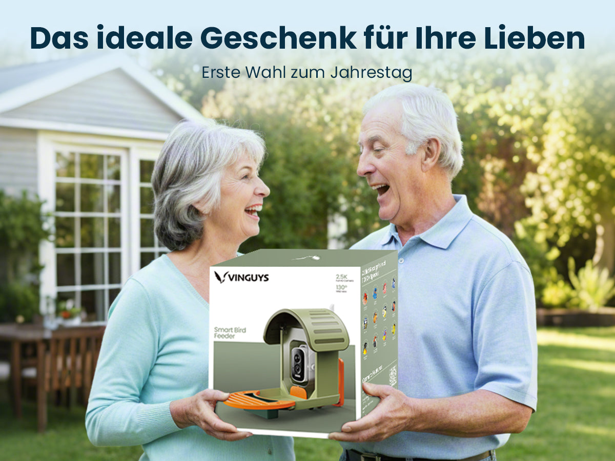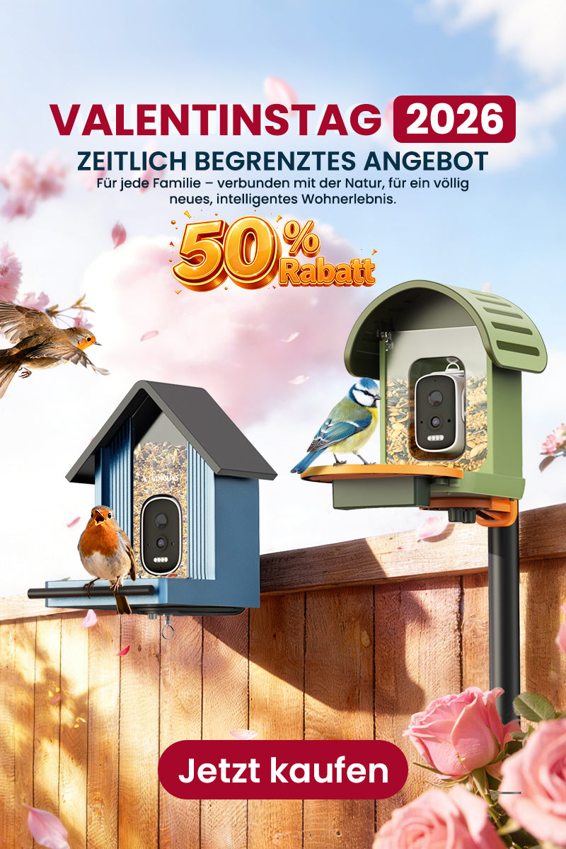 VINGUYS verfügt über eine Warnsignal-Funktion, die Eichhörnchen abschrecken und deren Zugang zu Vogelfutter minimieren soll. Diese Funktion kann Eichhörnchenstörungen verringern, jedoch ist es wichtig zu verstehen, dass kein Vogelfutterspender völlig eichhörnchensicher ist – besonders bei besonders entschlossenen Eichhörnchen. Für beste Ergebnisse empfehlen wir, Ihren V-Feeder an einem offenen, erhöhten Ort zu platzieren, an dem Eichhörnchen ihn nur schwer erreichen können.