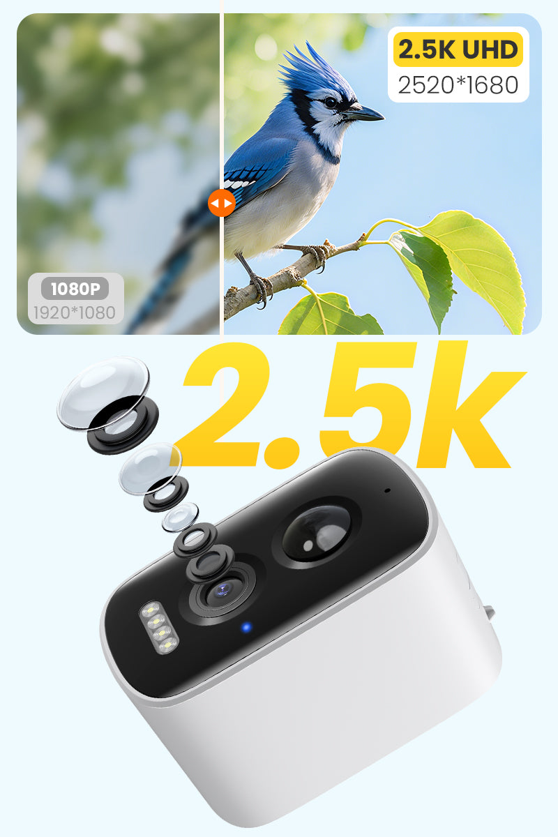 Erfassen Sie gestochen scharfe Nahaufnahmen von Vögeln mit unserer 2.5K-UHD-Kamera